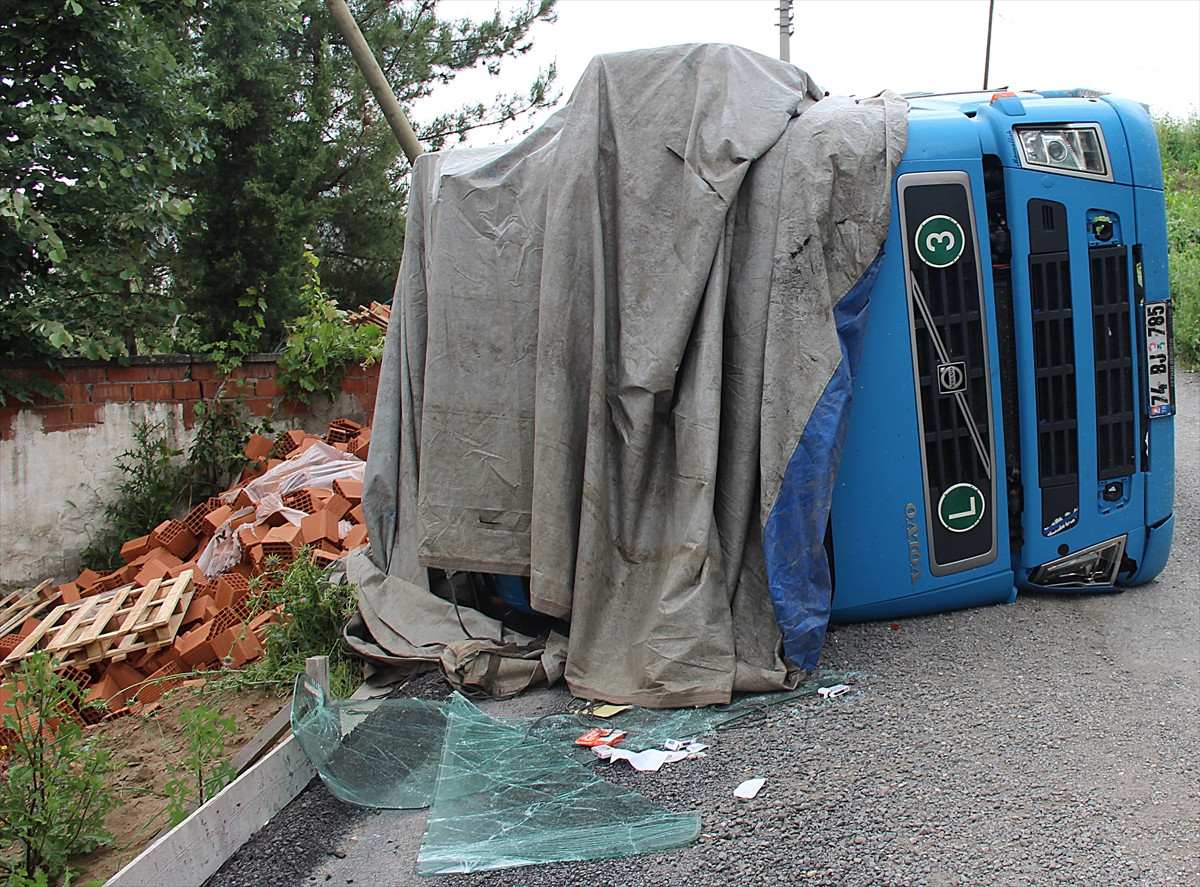 KARABÜK (AA) - Karabük'te tuğla yüklü tırın devrilmesi sonucu 2 kişi yaralandı.