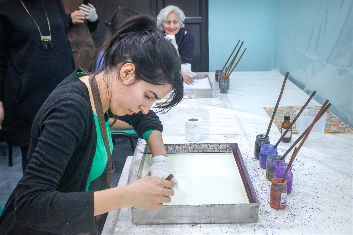 Ebru sanatının inceliklerini öğretilmesi amaçlanan kursta 72 kursiyer eğitim alıyor.