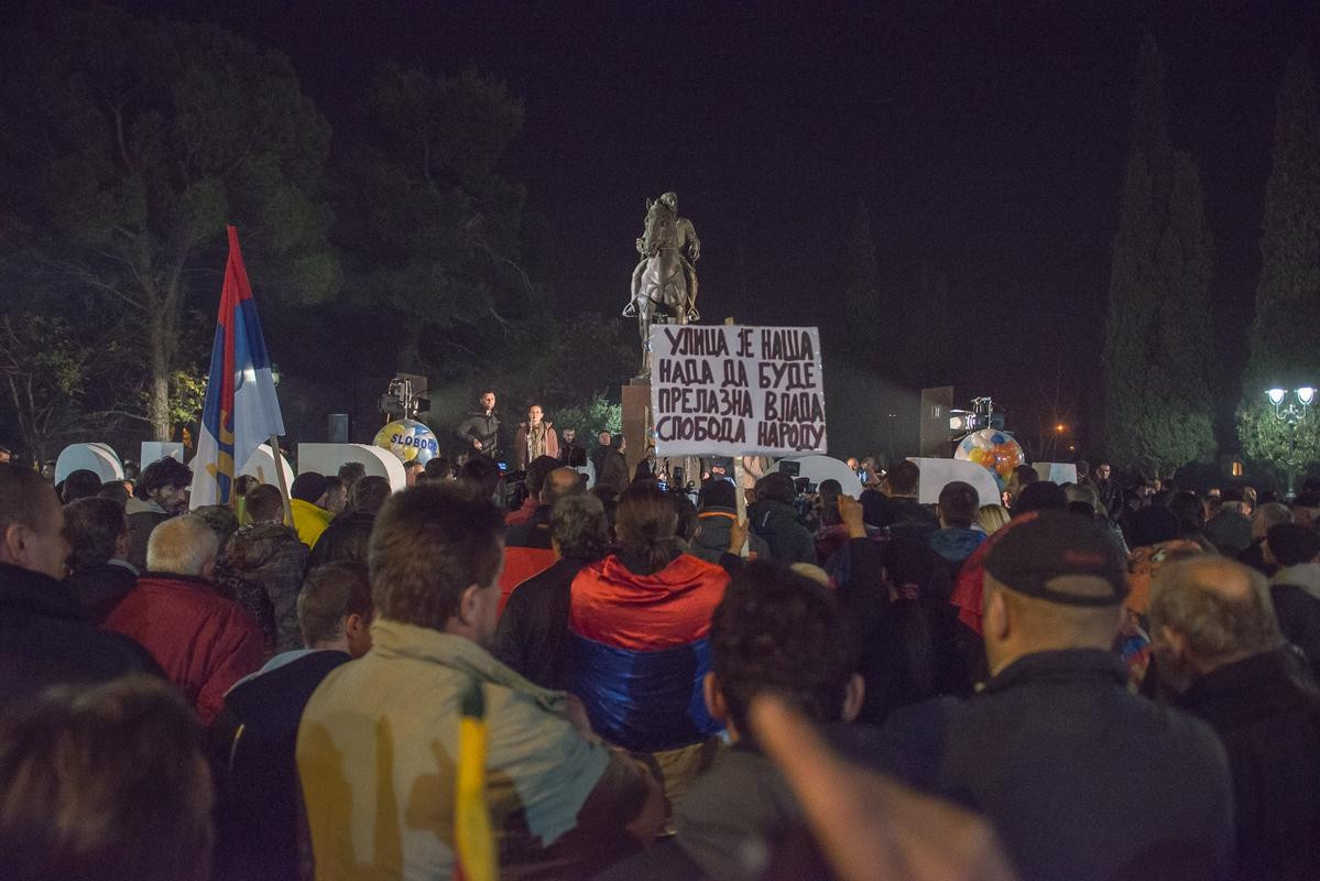Meclis binası önünde toplanan yaklaşık bin gösterici, geçici hükümetin kurulmasına yönelik çağrıda bulunarak, ellerindeki Sırbistan ve Karadağ bayraklarını açtı.