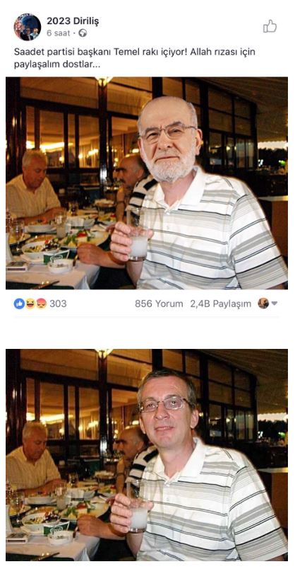 Paylaşımda Saadet Partisi Genel Başkanı ve Cumhurbaşkanı adayı Temel Karamollaoğlu’nun montajlanmış bir fotoğrafı yer alıyor.