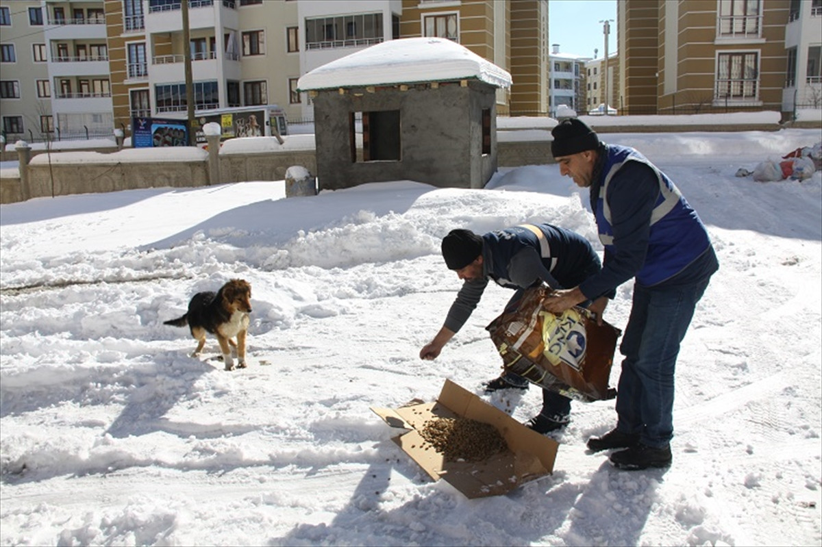 Bingöl Belediyesi, kent merkezinde etkili olan yoğun kar yağışı ve tipi nedeniyle karla mücadele çalışmalarını sürdürürken, yiyecek bulmakta zorlanan sokak hayvanları için de çalışma yürütüyor.