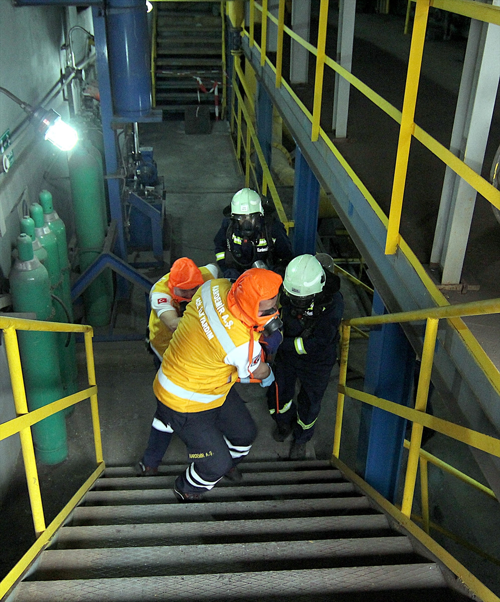 KARABÜK (AA) - Karabük Demir ve Çelik Fabrikaları (KARDEMİR) AŞ'de, İş Sağlığı ve Güvenliği Haftası kapsamında "kurtarma" tatbikatı yapıldı.