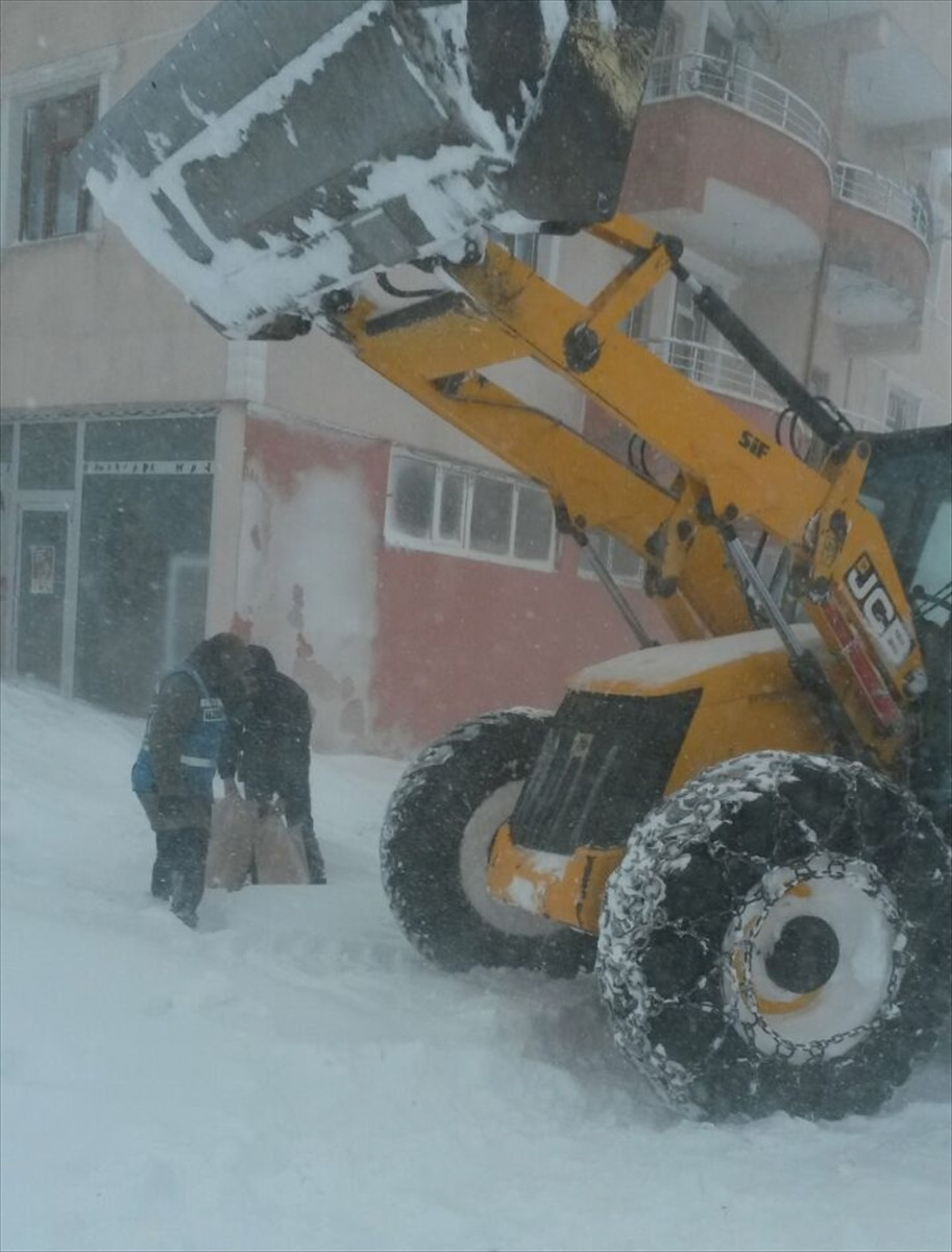 Karlıova Belediyesi ekipleri, bazı mahallelerde kar yağışı nedeniyle evlerinden çıkamayan vatandaşlara su ve ekmek dağıttı.