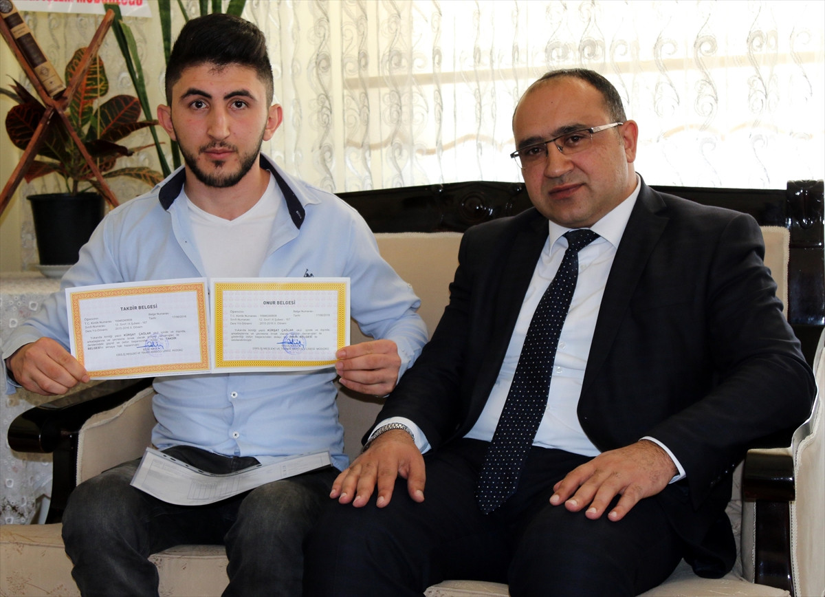 Diriliş Mesleki ve Teknik Anadolu Lisesi son sınıf öğrencisi Kürşat Çağlar (19), şubat ayında Kılavuz Mahallesi'ndeki bir apartmanın 4. katında bulunan evlerinin balkonundan düştü. Vücudunda kırıklar oluşan ve uzun süre hastanede yatan Çağlar'ın tedavisi, daha sonra evinde devam etti. Öğretmenleri Çağlar'ın derslerinden geri kalmaması ve okulunu bitirmesi için evde eğitim verdi. Takdir belgesi almaya hak kazanan Çağlar'ı, okul idaresi de onur belgesi ile ödüllendirdi.