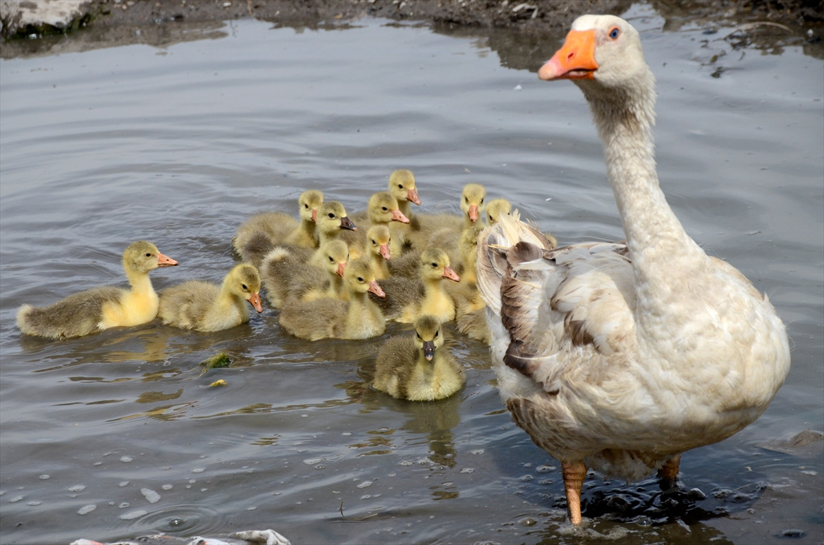 Kazı ve kaz yemekleriyle ünlü Kars'ta, nisan ayıyla ilk yavrular yumurtadan çıkmaya başladı. Kümeste palazlanmalarının ardından anne kazlarla açık havaya çıkarılan kaz yavrularının, çayırlık alanda otlamaları ve küçük su birikintilerinde yüzmeleri, kaz çiftliklerine canlılık kattı.