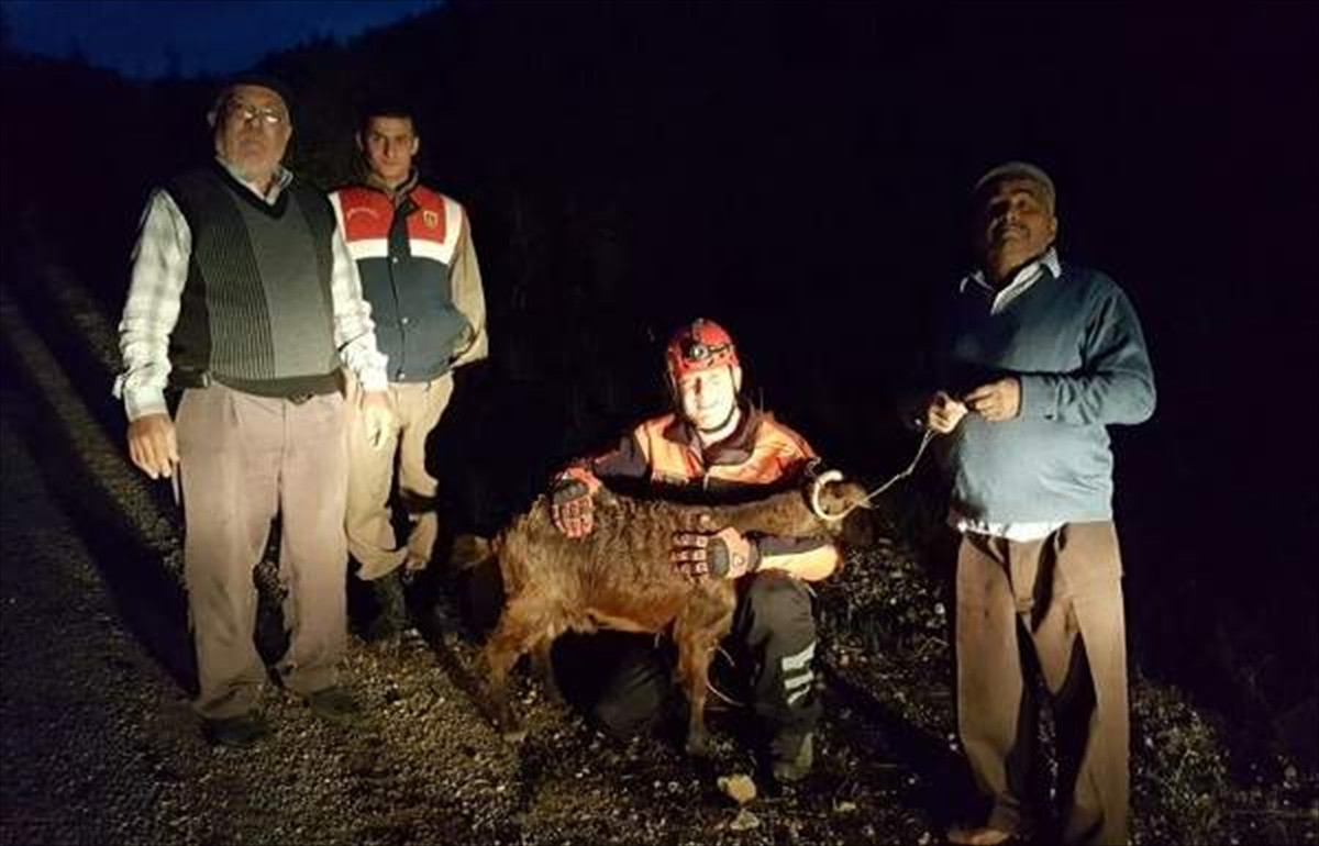 Kısa sürede olay yerine gelen ekipler, ulaşılması zor kayalık alanda mahsur kalan keçiyi kurtararak sahibi Zengin'e teslim etti.