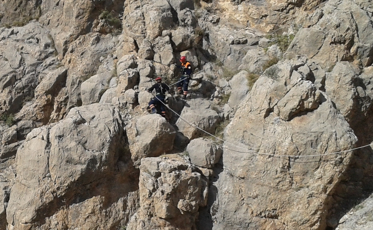 Sarp ve dik olduğu için 145 metre yüksekliğindeki kayalıklara çıkamayan köylüler, keçilerin kurtarılması için Erzincan AFAD ekibinden yardım istedi.