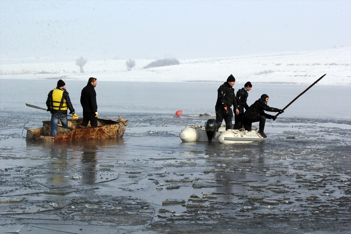 Baraj gölünün kısmen buz tutması nedeniyle Babaeski Belediyesine ait iş makinesi yardımıyla buzların kırılmasının ardından suya girebilen ekipler, önce kayıp avcının şapka ve çizmesini buldu.