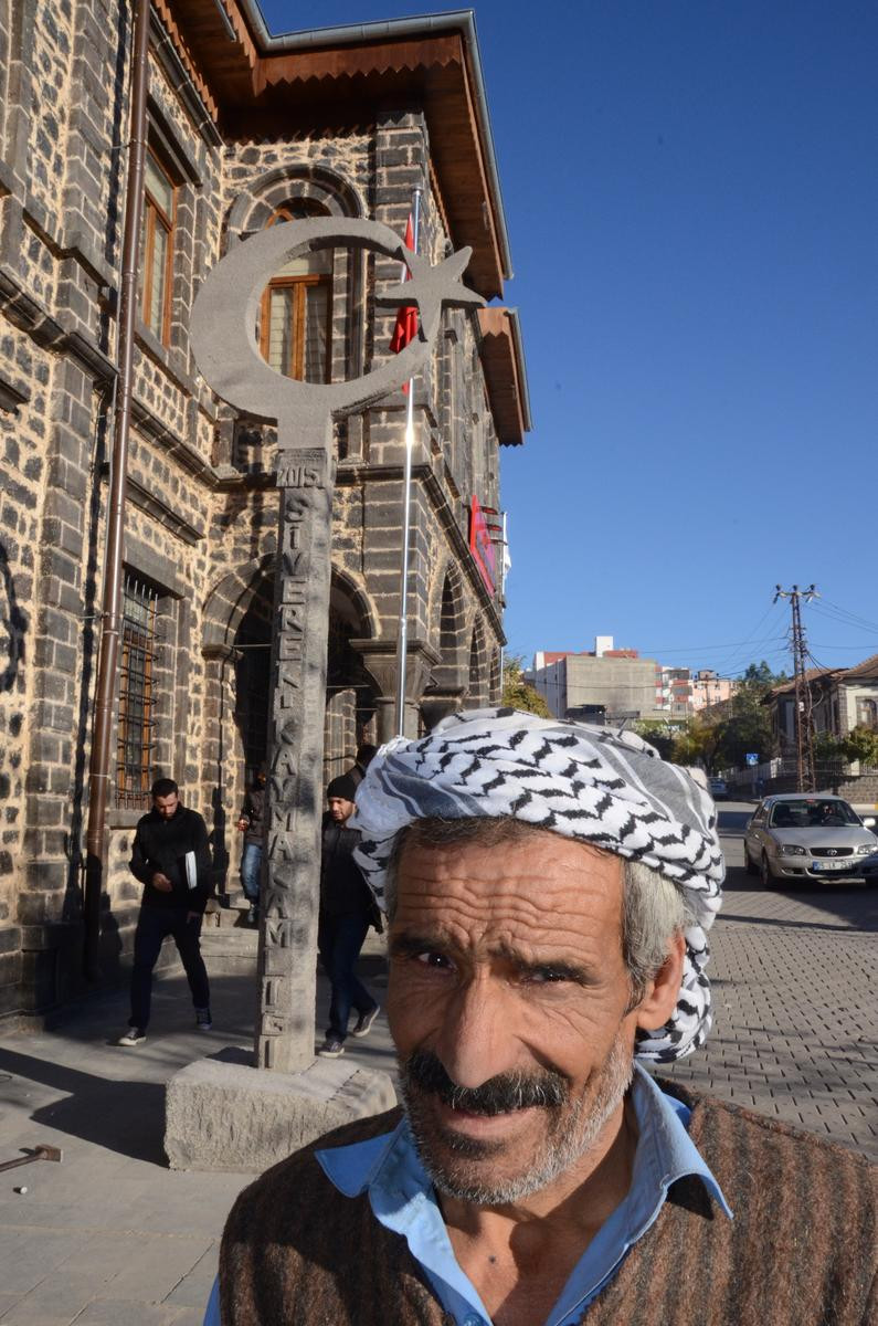 Selaniş, "Kaymakamlığımız eski tarihi vilayet binasında hizmet vermeye başladı. Ben de taş binaya yakışacak şekilde 5,5 metre boyunda, 2 buçuk ton ağırlığında taş bayrak yaptım. Bayrağı Kaymakamlık binasının önüne dikmeye başladık" dedi.