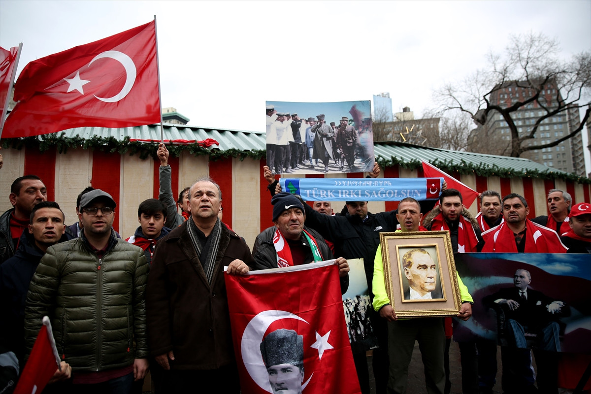 Union Meydanı'ndaki gösteriye Türk kuruluşları TADF, Young Turks Derneği ve Türk Amerikan Demokratlar Birliği destek verdi.