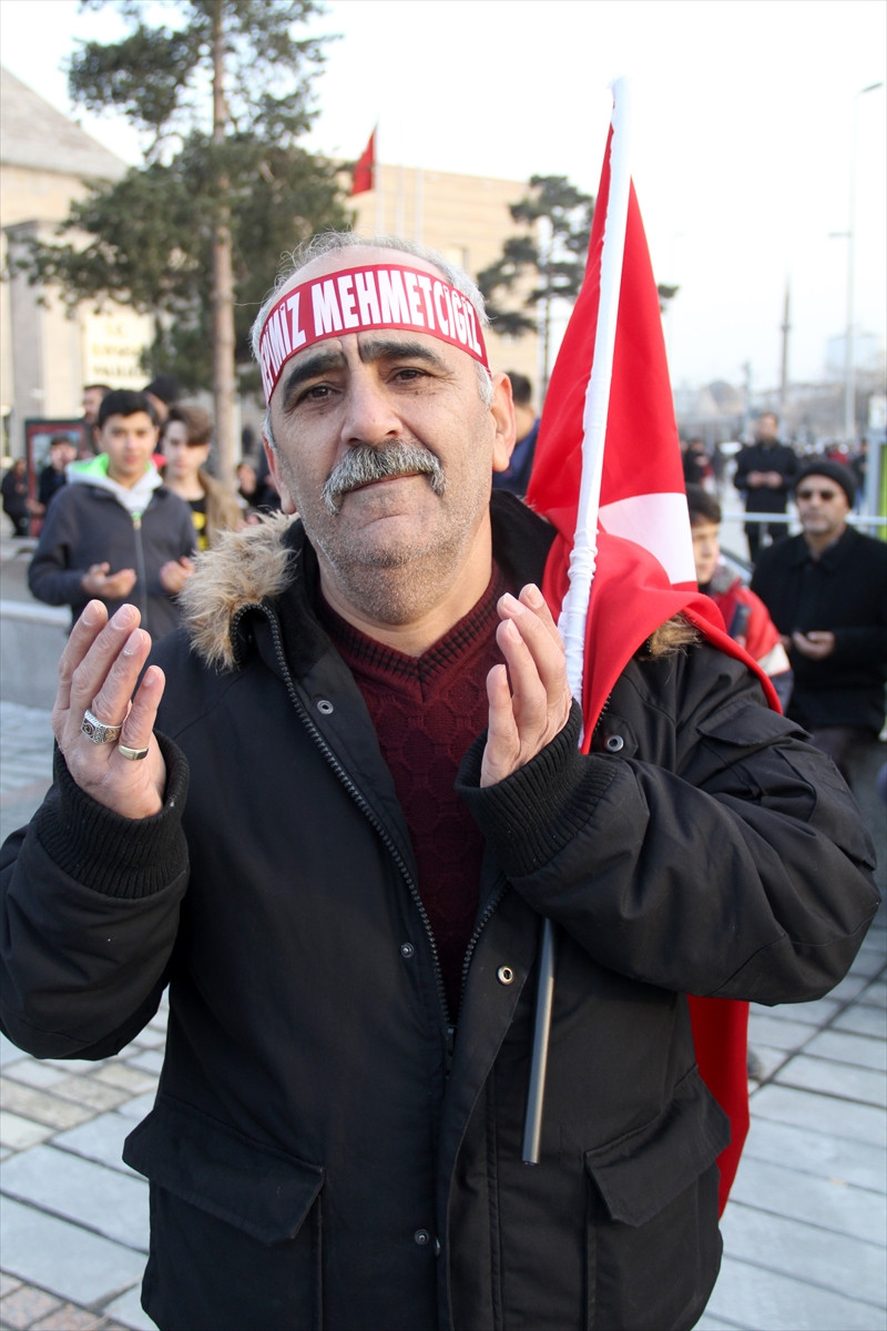 Kayseri'deki terör saldırısında şehit düşen askerlerin isimlerinin okunmasının ardından organizasyonu yapan sivil toplum örgütlerinin temsilcileri, katılımcıları tek tek selamlayarak birlik ve beraberlik mesajı verdi.