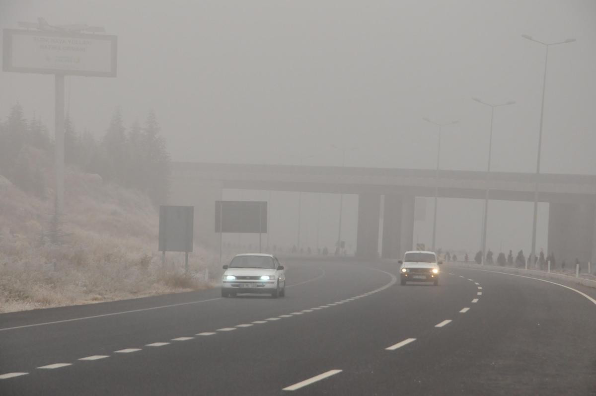 Sabah saatlerinde etkisini arttıran sis nedeniyle Kayseri-Ankara karayolunun bazı bölümlerinde görüş mesafesi 50 metreye kadar düştü.
