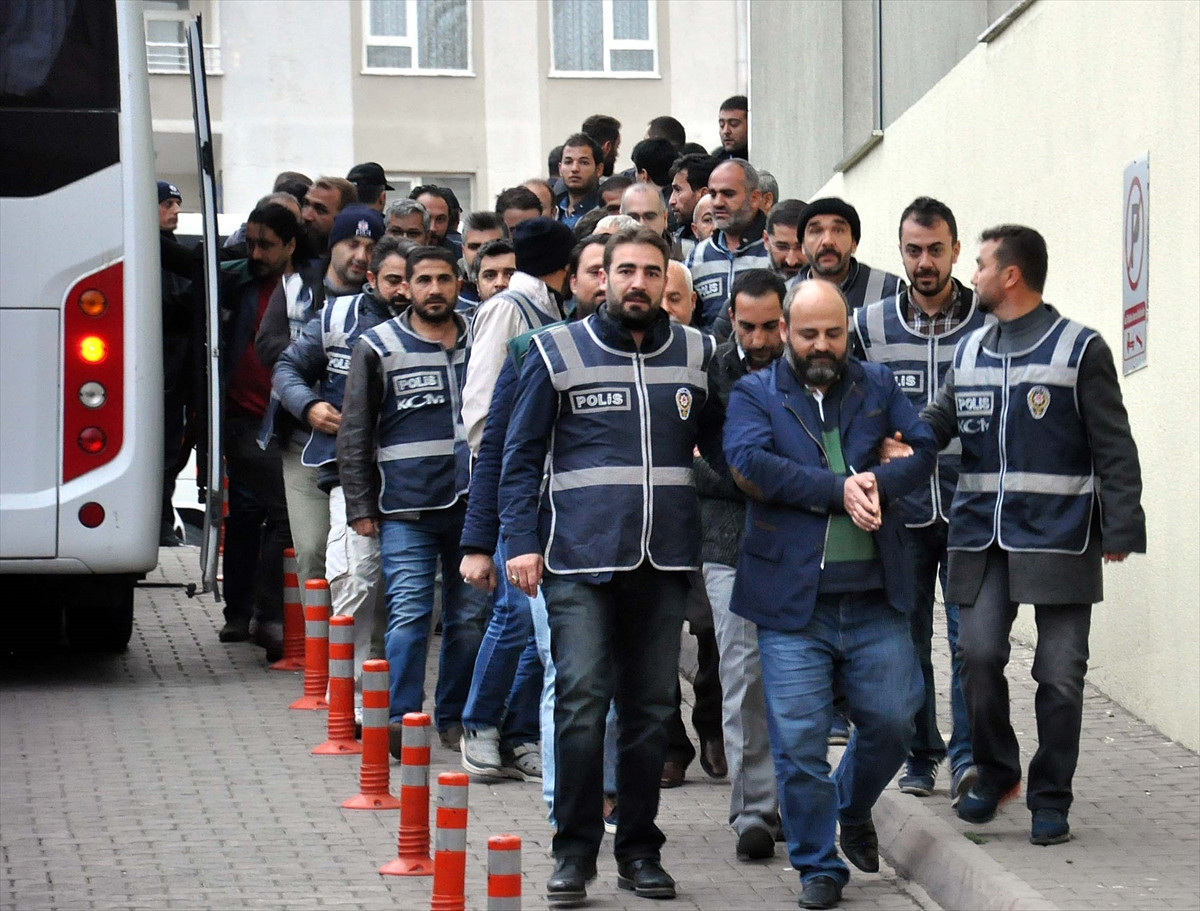 Kayseri Eğitim ve Araştırma Hastanesinde sağlık kontrolünden geçirilen zanlılar, adliyeye sevk edildi.