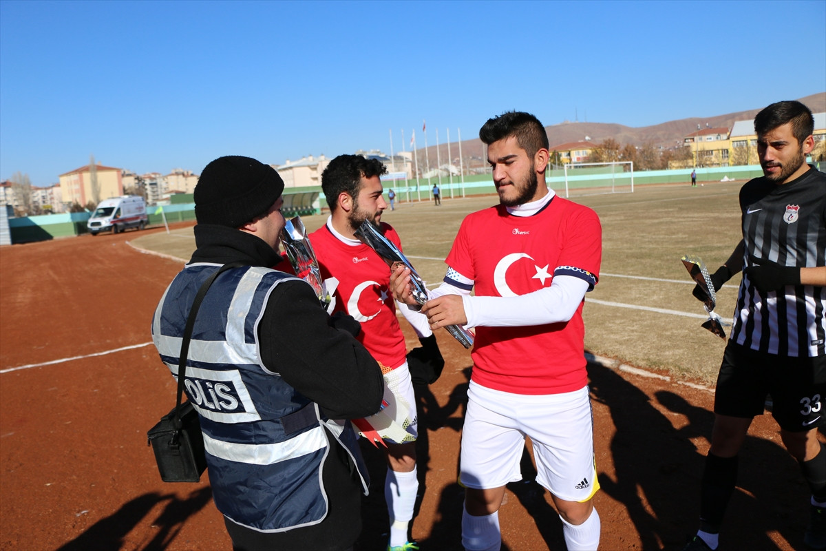 AKSARAY (AA) - Bölgesel Amatör Ligi (BAL) 6. Grup'taki karşılaşması için Aksaray'a gelen Talasgücü Belediyespor takımı, maça ay-yıldızlı tişörtle ve "Şehitlerimizi rahmetle anıyoruz" pankartıyla çıktı.