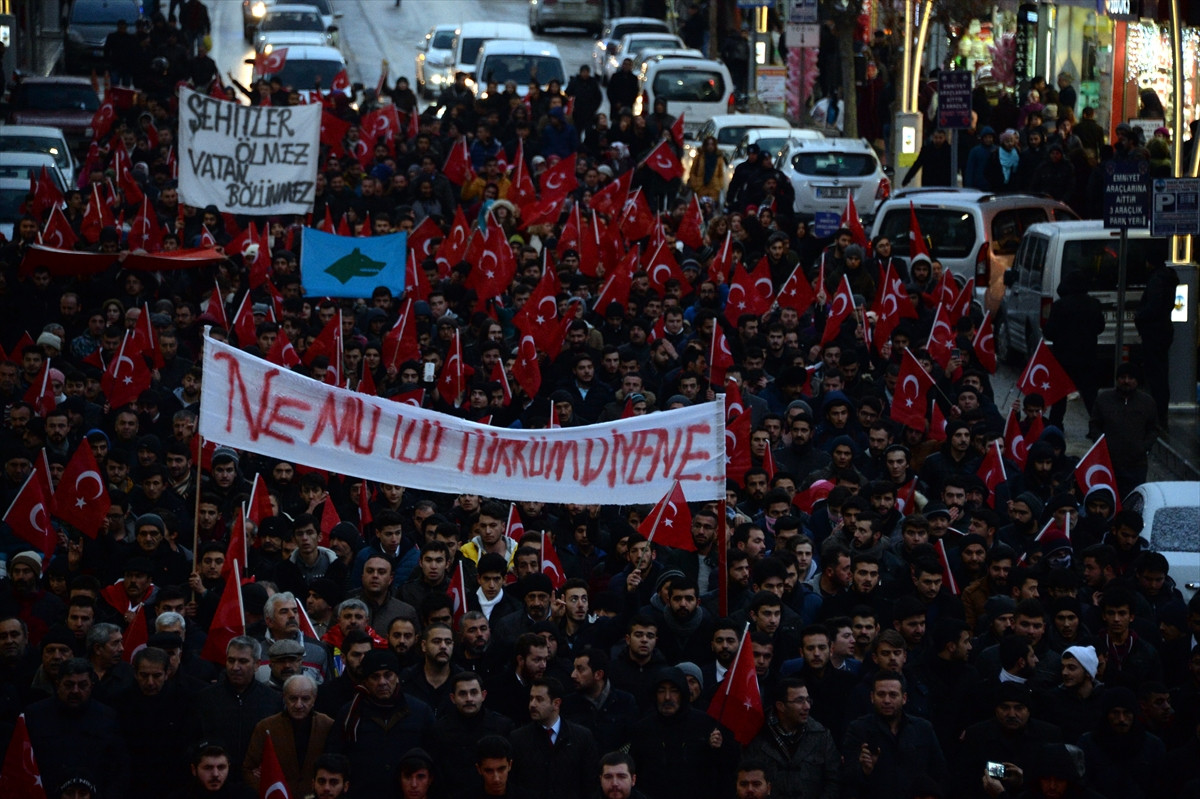 MHP Tokat İl Başkanlığı tarafından organize edilen yürüyüşe katılan vatandaşlar, ellerinde Türk bayrakları ile Cumhuriyet Meydanı'nda toplandı.