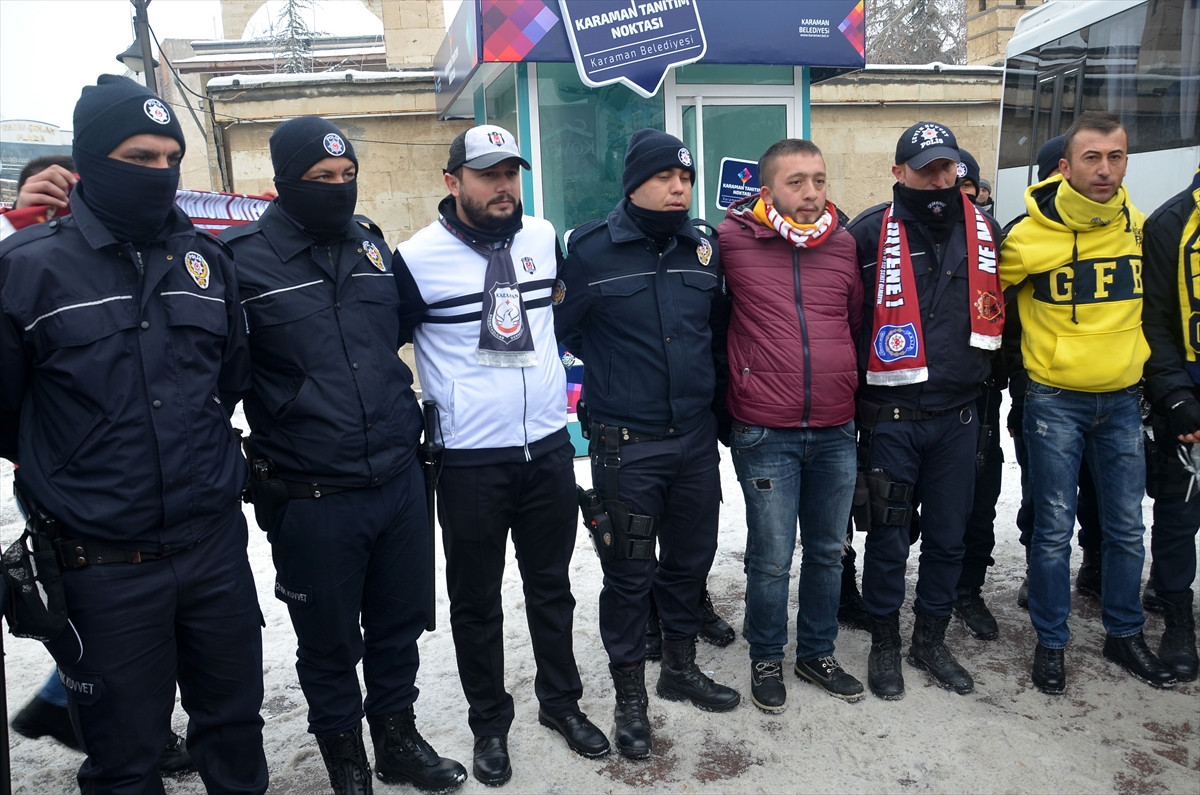 Karaman'daki taraftar gruplarının organizasyonuyla Aktekke 15 Temmuz Demokrasi Meydanı'nda toplanan vatandaşlar, "Şehitler ölmez vatan bölünmez", "Kahrolsun PKK" ve "Askere uzanan eller kırılsın" sloganları attı.