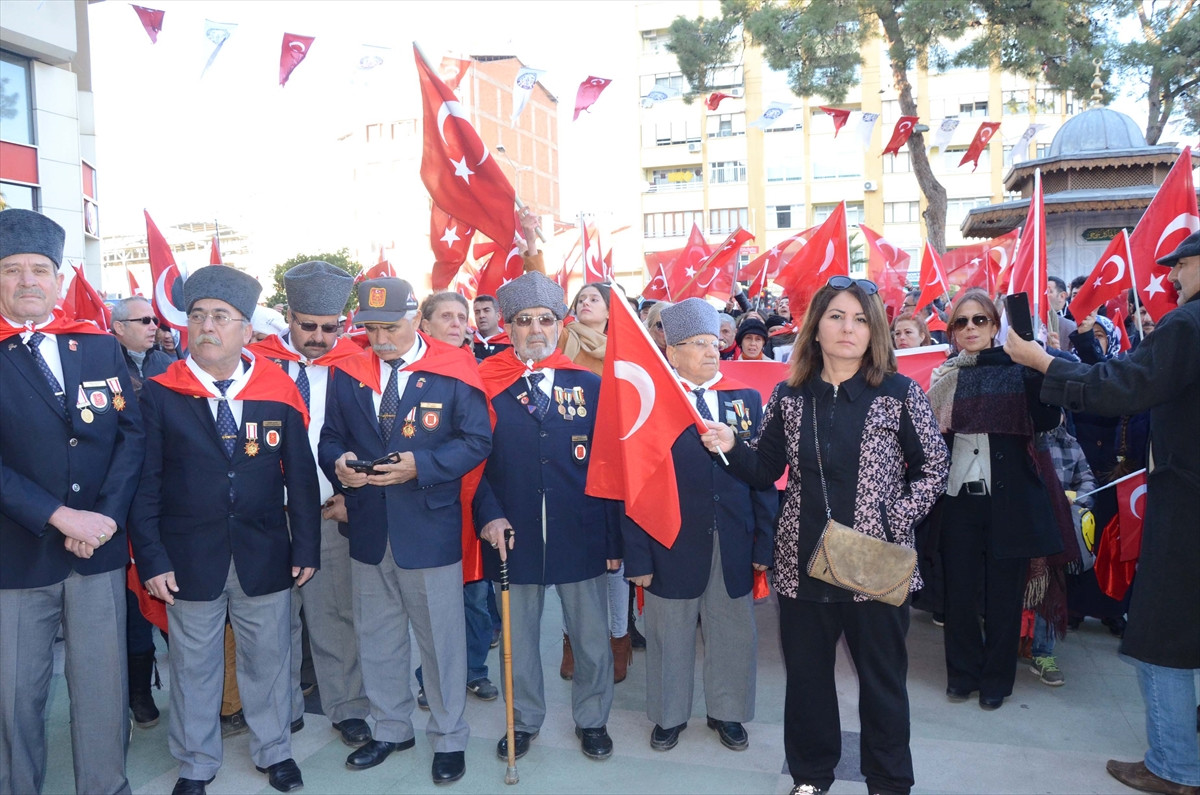 Buradaki programın ardından düzenlenen yürüyüşte vatandaşlar, ellerinde Türk bayraklarıyla yaklaşık 2 kilometre "Şehitler ölmez vatan bölünmez", "Polis ve askere kalkan eller kırılsın" şeklinde slogan atarak Belediye Meydanı'na kadar yürüdü.