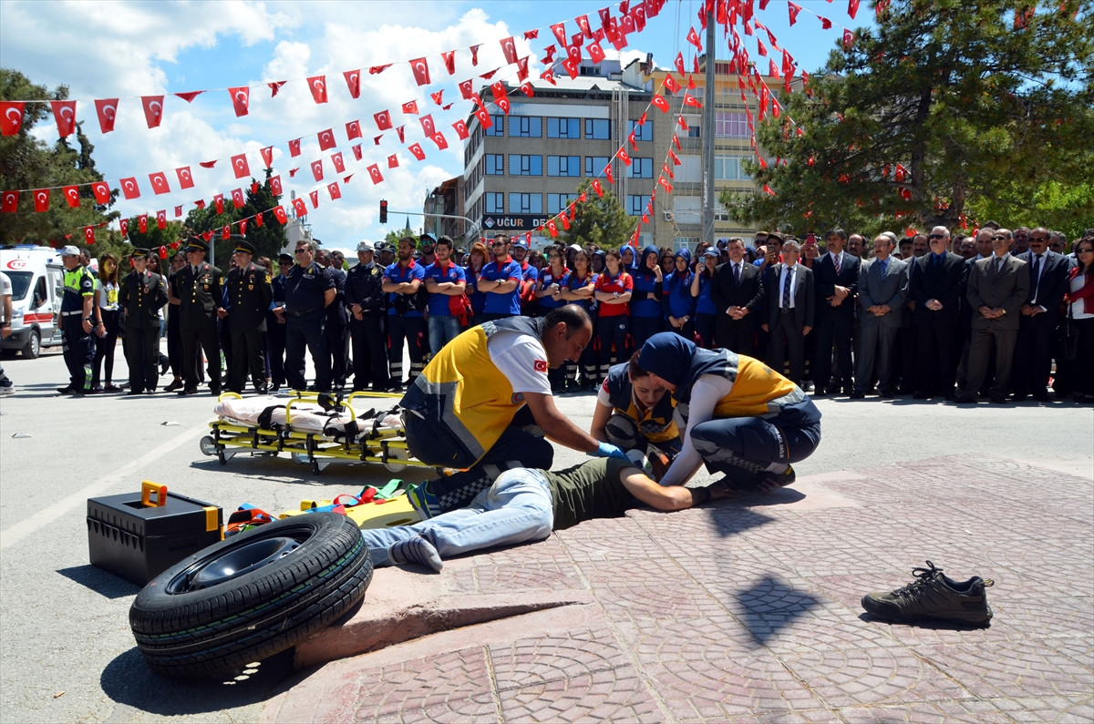 BURDUR (AA) - Burdur'da düzenlenen "Karayolu Güvenliği ve Trafik Haftası" etkinlikleri kapsamında, senaryo gereği kaza yapan otomobilde sıkışan sürücü ekiplerce kurtarıldı.