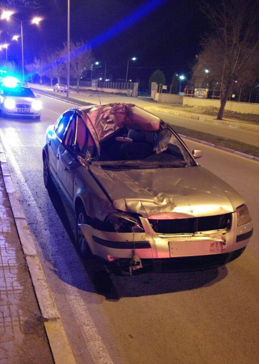 ÇORUM (AA) - Çorum'da tıra arkadan çarpması sonucu ağır yaralanan otomobilin sürücüsü, hasarlı aracıyla hastaneye gitmeye çalıştı.