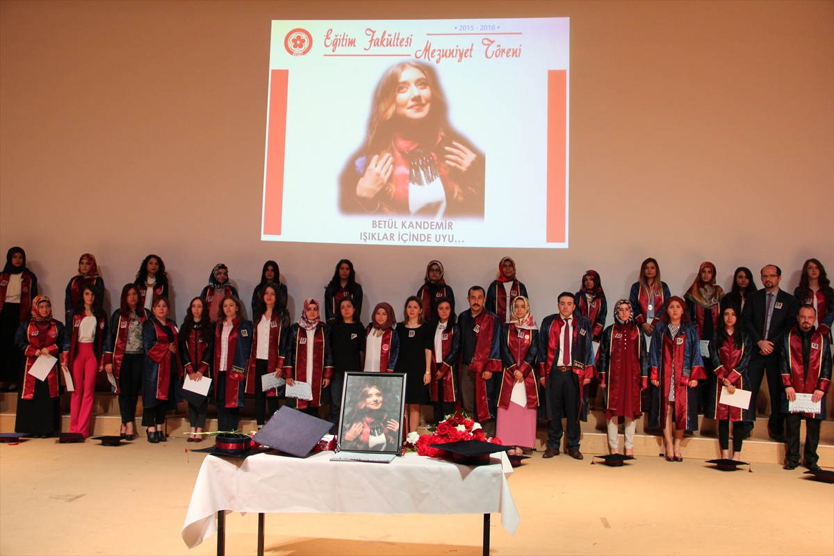 Kandemir'in ölümü nedeniyle sönük geçen mezuniyet töreninde arkadaşlarının ve bazı hocalarının gözyaşlarına hakim olmadığı görüldü.