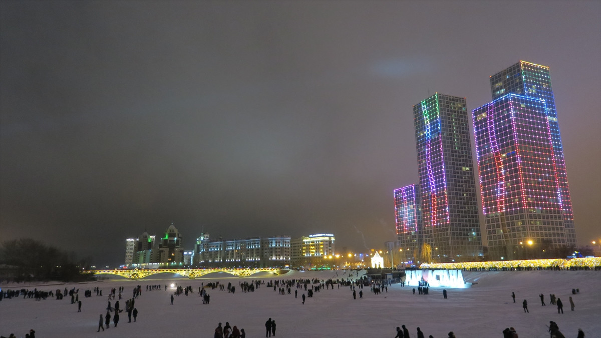 Astana’nın önemli noktalarında yeni yıl renkli gösterilere sahne oldu. Bir alışveriş merkezinin bahçesindeki "Buz kenti" ziyaret eden yüzlerce kişi çocuklarıyla kayak yaparak eğlenirken, yerel sanatçılar da konser verdi.