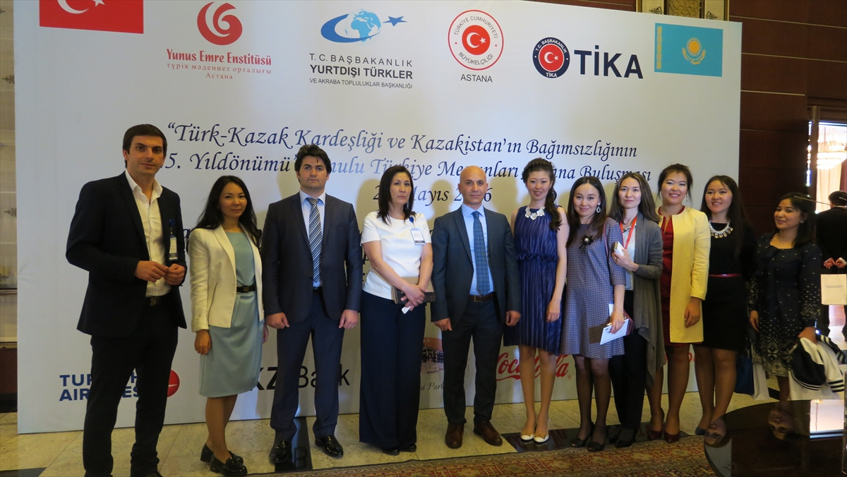 Kazakistan’da Türk-Kazak kardeşliği ve Kazakistan’ın bağımsızlığının 25. yıl dönümü dolayısıyla farklı dönemlerde Türkiye'deki üniversitelerden mezun olan Kazak vatandaşları, Türkiye'nin Astana Büyükelçiliği rezidansında yapılan buluşmada bir araya geldi.