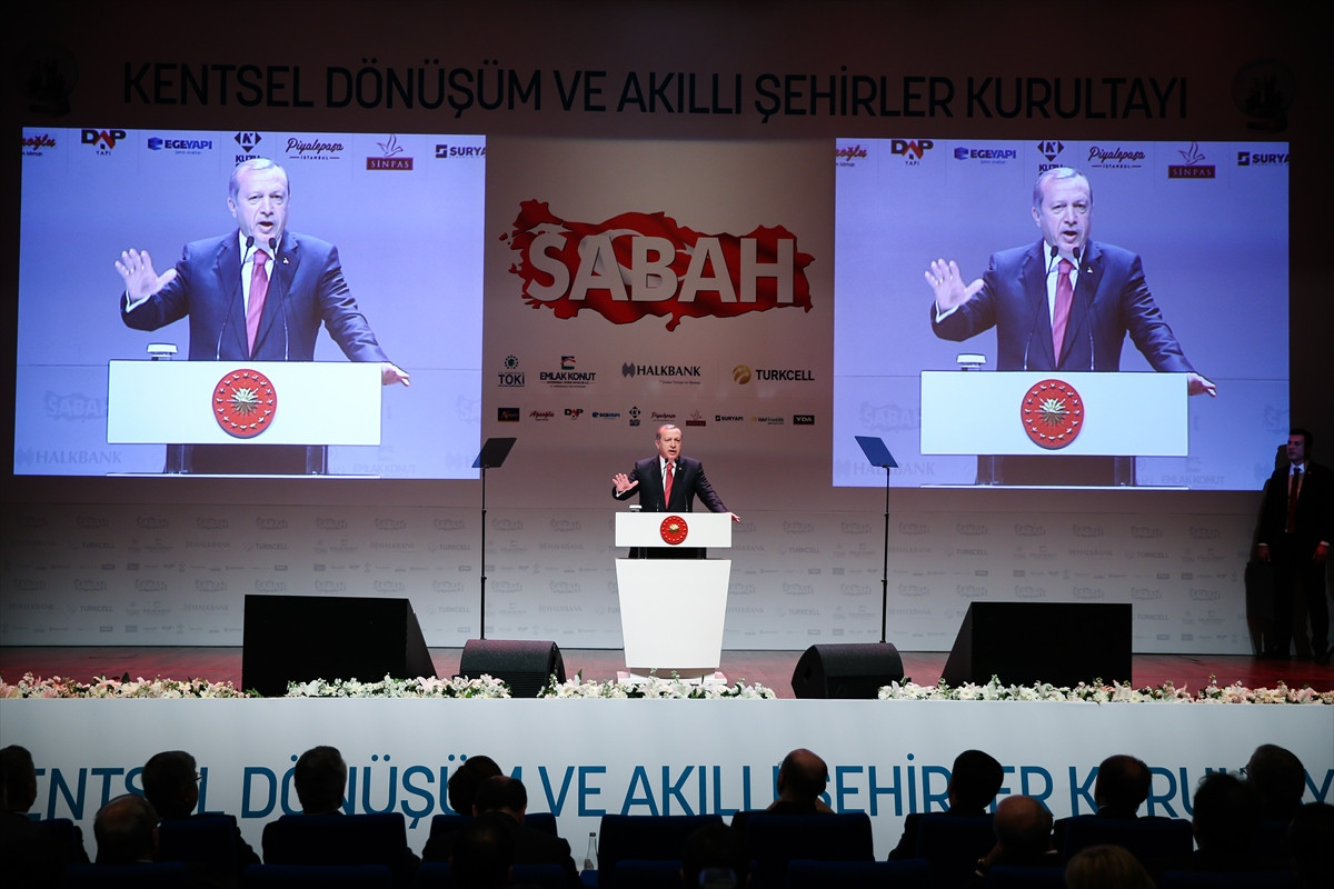 Cumhurbaşkanı Erdoğan, Haliç Kongre Merkezi'nde düzenlenen Kentsel Dönüşüm ve Akıllı Şehirler Kurultayı'nda yaptığı konuşmada, Türkiye'nin, şehir nüfusunun 2. Dünya Savaşı sonrası hızla arttığı pek çok ülke gibi ciddi bir kentleşme sorunu yaşadığını, İstanbul, Ankara, İzmir gibi nüfusu hızla artan şehirlerin çevrelerini saran, adeta bulduğu her boşlukta yayılan imarsız yapıların, dönemin plansızlığının, projesizliğinin vizyonsuzluğunun bir ürünü olduğunu söyledi.