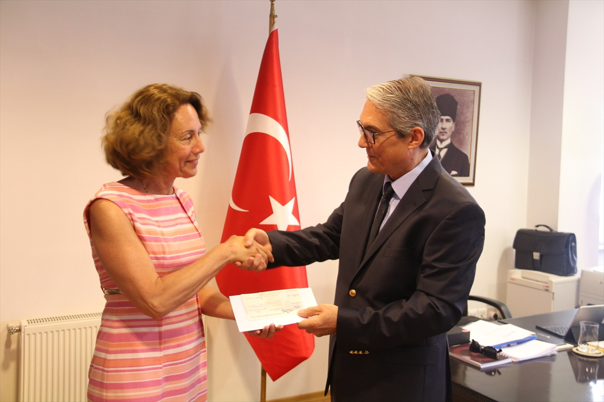 Kanbay, daha sonra Türkiye'nin yardım çekini Küçük'e takdim etti.