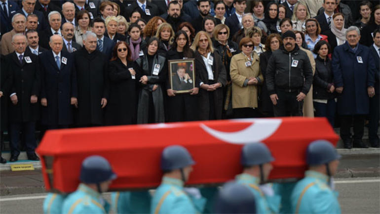 Acılı aile daha sonra Bölükbaşı’nın Türk bayrağına sarılı tabutuna sarılıp gözyaşı döktü. Cenaze namazına katılan CHP Genel Başkanı Kemal Kılıçdaroğlu ile MHP Genel Başkanı Devlet Bahçeli yan yana saf tuttu ve iki lider bir süre aralarında sohbet etti.