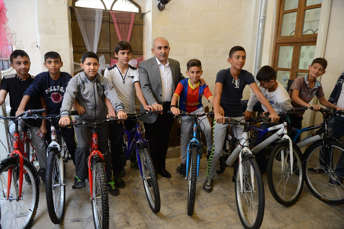 Kara daha sonra, aralarında Suriyelilerin de bulunduğu çocuklara bisiklet hediye etti.
