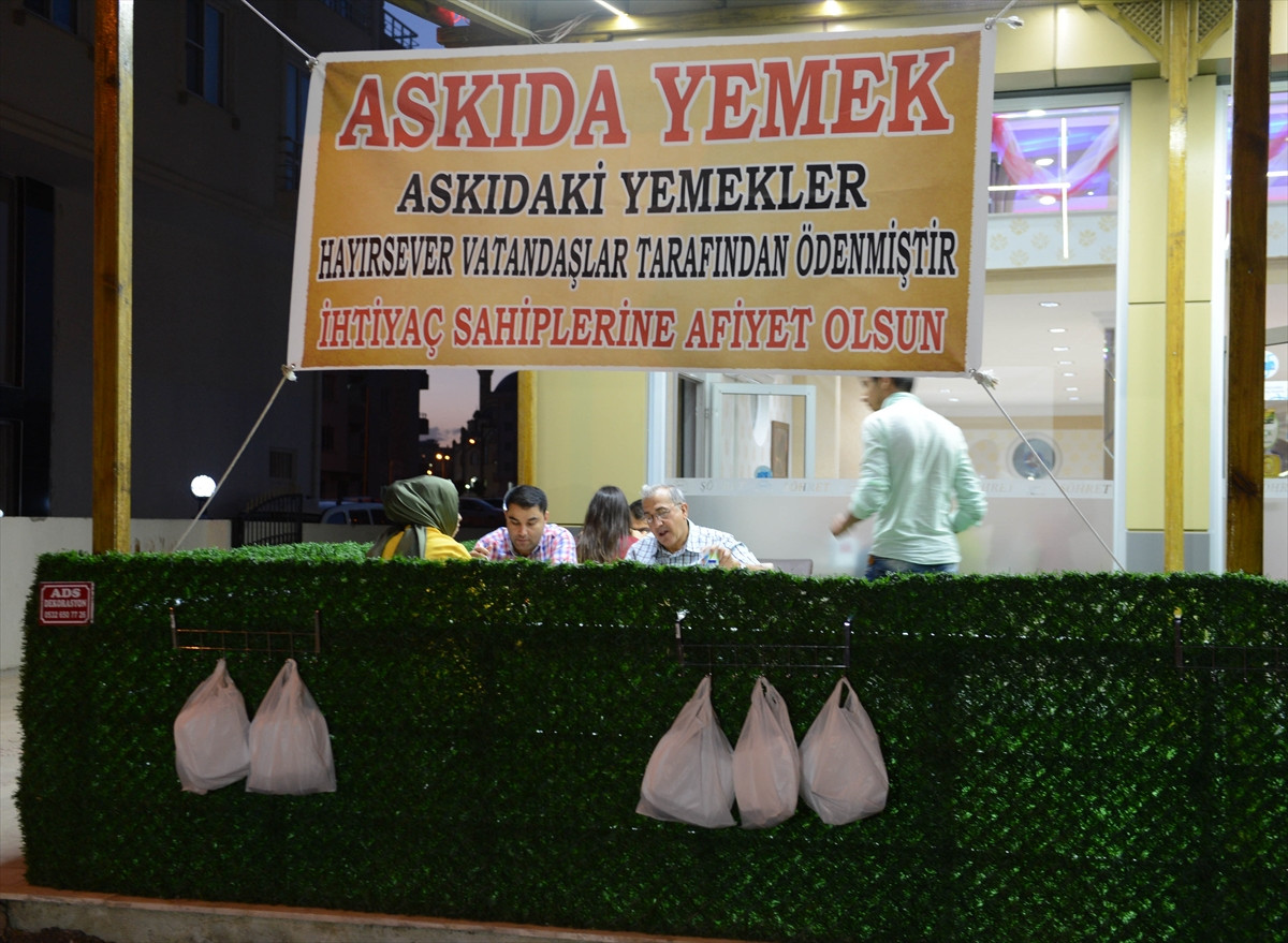Yenibeşevler Mahallesi'nde restoranının önüne "Askıdaki yemekler hayırsever vatandaşlar tarafından ödenmiştir. Afiyet olsun" yazılı pankart asan Raif Gürkan, gazetecilere yaptığı açıklamada, ramazanın birlik, beraberlik, kardeşlik ve bereket ayı olduğunu söyledi.
