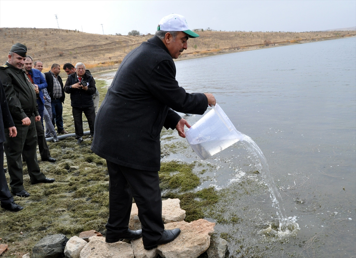 Vali Mehmet İlker Haktankaçmaz, Belediye Başkanı Mehmet Saygılı ve DSİ. 5. Bölge Müdürü Mahmut Dündar, baraj gölüne 100 bin pullu sazan yavrusu attı.