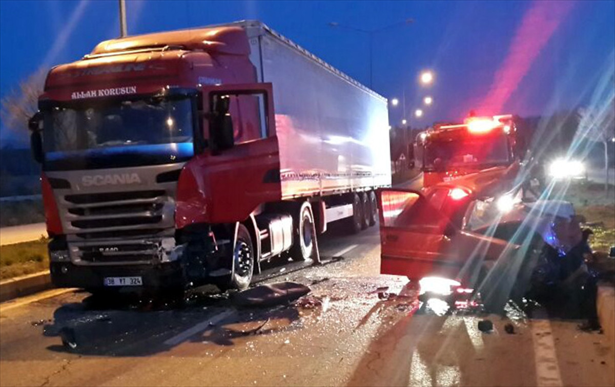 Alınan bilgiye göre, Mustafa Osman Akyürek'in (23) kullandığı 38 TS 7894 plakalı otomobil, Kırıkkale-Kayseri karayolu Arpalık Çukuru mevkisinde sürücünün direksiyon hakimiyetini kaybetmesi sonucu, karşı şeride geçerek Yavuz Tangöz idaresindeki 38 YT 324 plakalı tır ile çarpıştı.