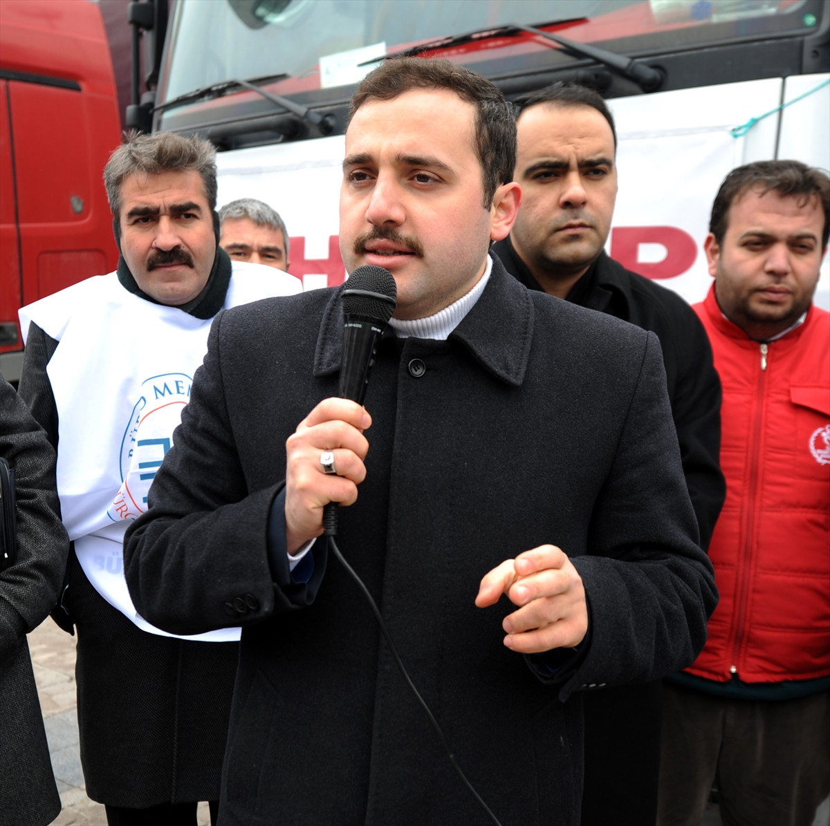 Okunan duaların ardından yardım malzemelerinin yüklü olduğu tırlar yola çıktı.