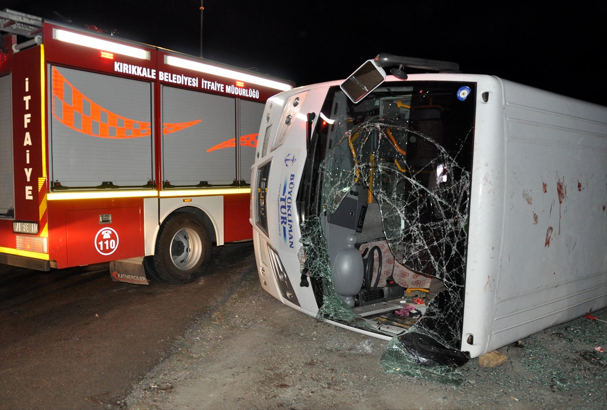 Trabzon'dan Ankara'ya düğüne gidenleri taşıyan midibüsün Kırıkkale'de devrilmesi sonucu 15 kişi yaralandı. Alınan bilgiye göre, Mustafa Yazıcı (60) idaresindeki 61 S 3632 plakalı midibüs, Kırıkkale-Ankara karayolunun 20. kilometresinde sürücüsünün direksiyon hakimiyetini kaybetmesi sonucu yol kenarına devrildi. İhbar üzerine olay yerine çok sayıda 112 Acil Servis ve itfaiye ekibi sevk edildi. Kazada yaralanan Okan, Osman, Sait, Yaşar, Seyfi, Seher, Mehmet, Meryem, Oktay ve Alaattin Kılıç, Ekrem Küçük, Emine Kaba, Hanife Usta ile kimlikleri henüz belirlenemeyen 2 kişi, ambulanslarla Kırıkkale Üniversitesi Tıp Fakültesi ve Yüksek İhtisas Hastanesine kaldırıldı. Yaralıların hayati tehlikesi bulunmadığı öğrenildi. Midibüste bulunan 23 kişinin, Ankara'da bir düğüne katılmak üzere Trabzon'un Vakfıkebir ilçesinden yola çktığı belirtildi.