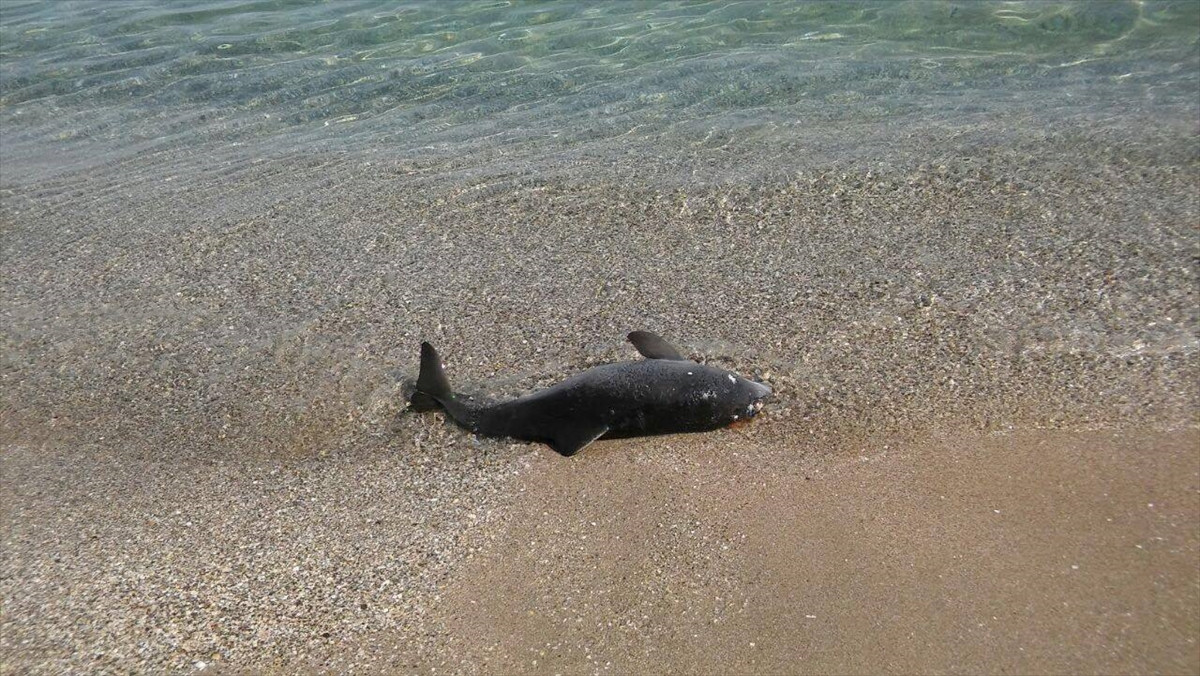 Sahilde gezinti yapan vatandaşlar, yaklaşık 1,5 metre uzunluğundaki yunusların sahile vurduğunu fark etti.