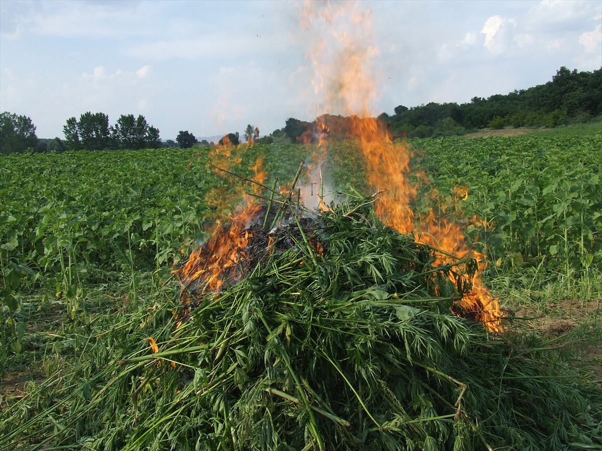 Sökülen kenevirler yakılarak imha edilirken, E.Ö gözaltına alındı.