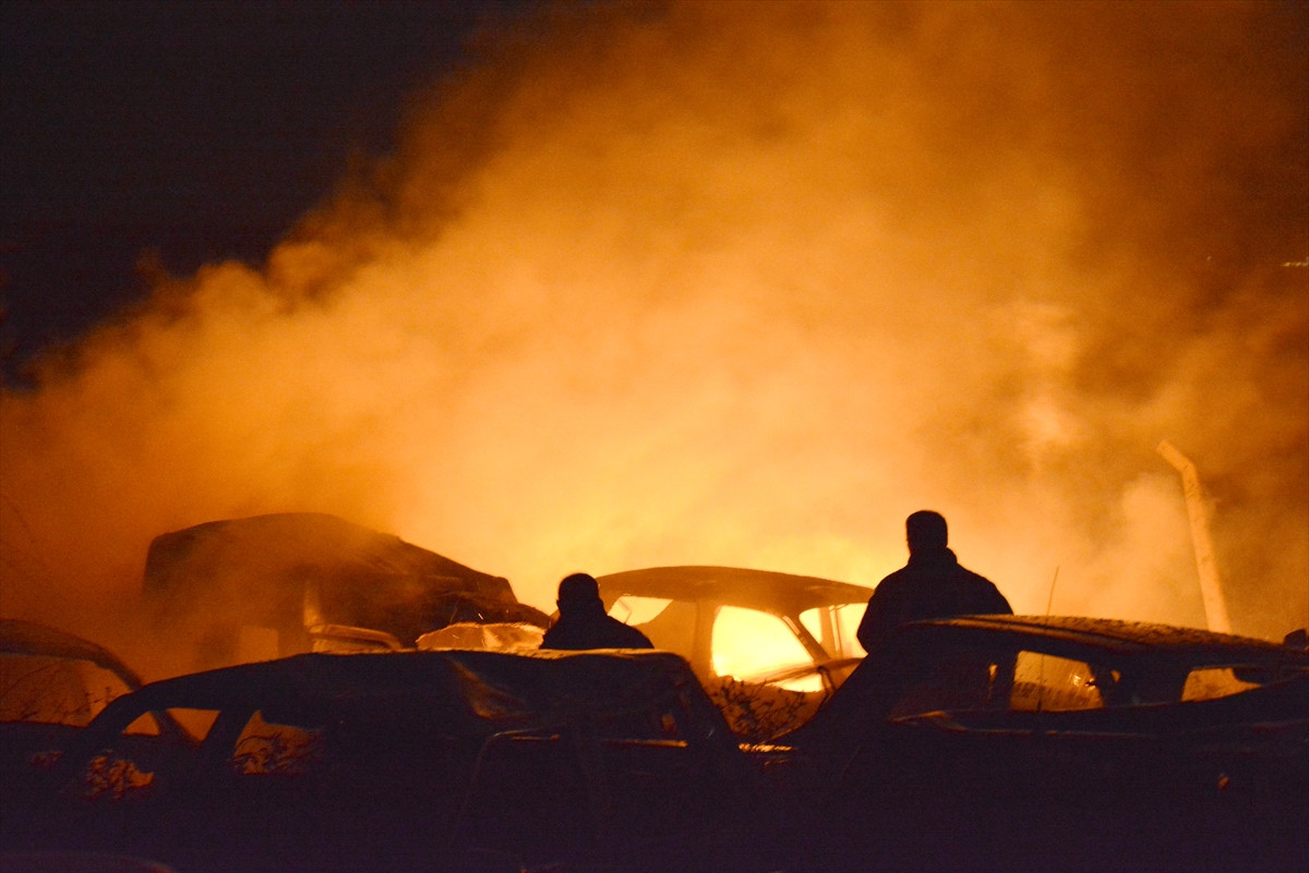 Yaklaşık 60 hurda aracın bulunduğu depodaki yangın, iki saatlik çalışmanın ardından keresteciler sitesine sıçramadan söndürüldü.