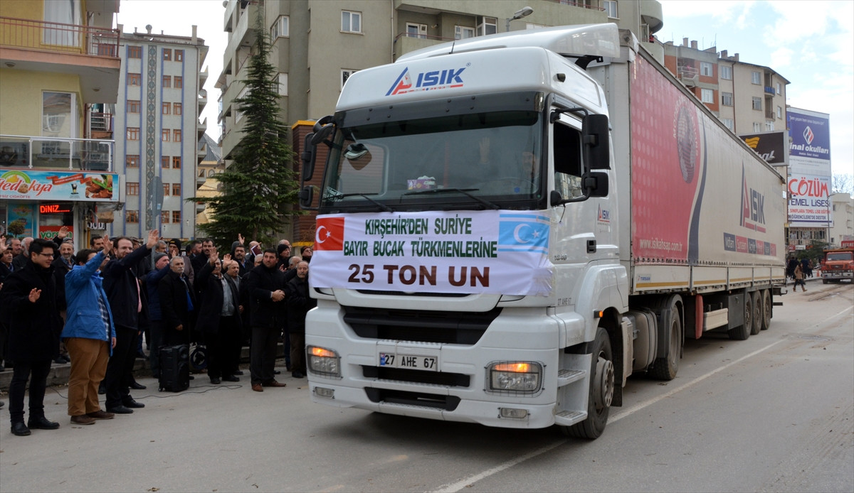 KIRŞEHİR (AA) - Bayırbucak Türkmenleri için düzenlenen kampanyada toplanan yardım malzemelerinin yüklendiği 2 tır, Kırşehir'den uğurlandı.