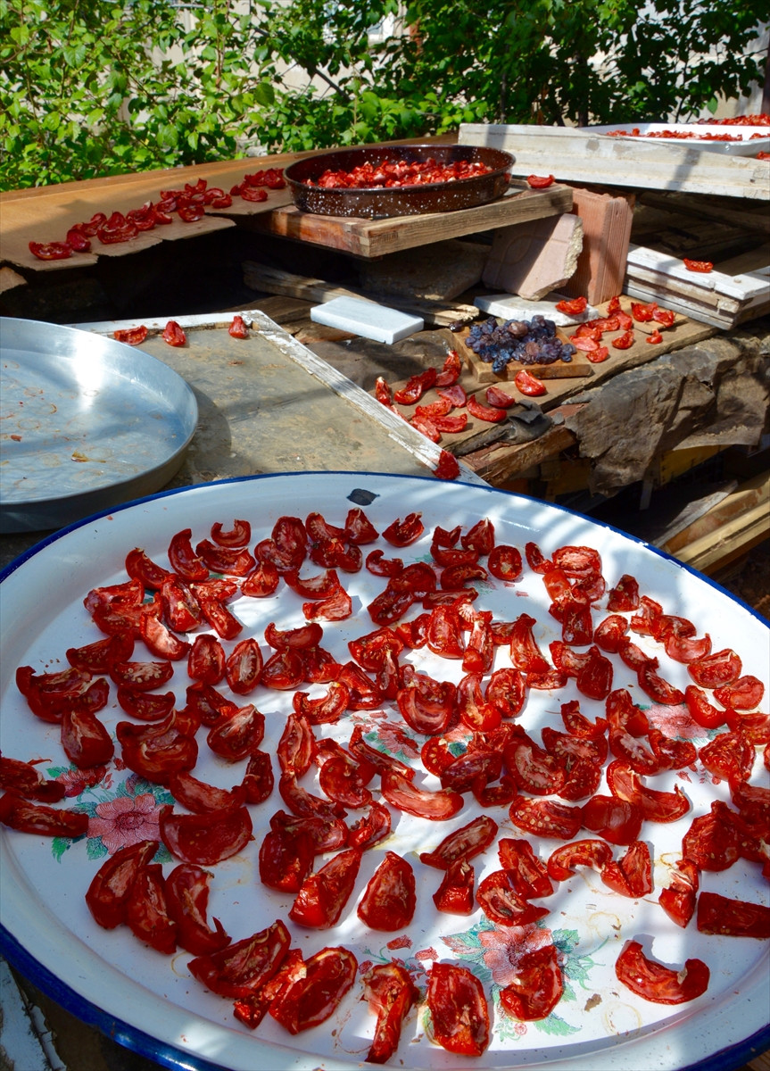 "Biber, domates, fasulye, meyvelerin bahçemde olmayanını da kurutuyorum. Dışarıdan alıyorum. Şeftaliyi, armutu, muzu, bal kabağını tatlısını yaparak kurutuyorum. Her türlü meyve ve sebzeyi değerlendiriyorum. Eskiden ailemde gördüğüm bir gelenek de etin kurutulmasıydı. Lezzeti de hoşuma gidiyordu. Emekli olduktan sonra bu işlere daha da ağırlık verdim. Eti kurutuyorum. Küçük küçük doğrayıp yemeklere kullanıyoruz. Kurutulan eti çerez gibi de tüketiyoruz."