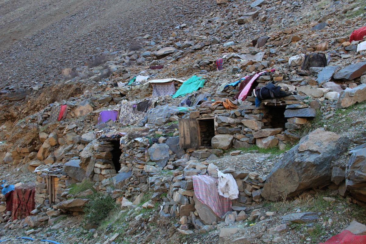 Hakkari'ye 45 kilometre uzaklıktaki Taşbaşı köyünün sakinleri, yazın soğuk hava deposu görevi gören mağaralara koydukları besinleri dışarı taşıdı.