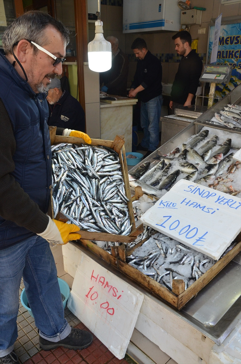 Tezgahları süsleyen hamsinin kilosu 10 liradan satışa sunuldu.