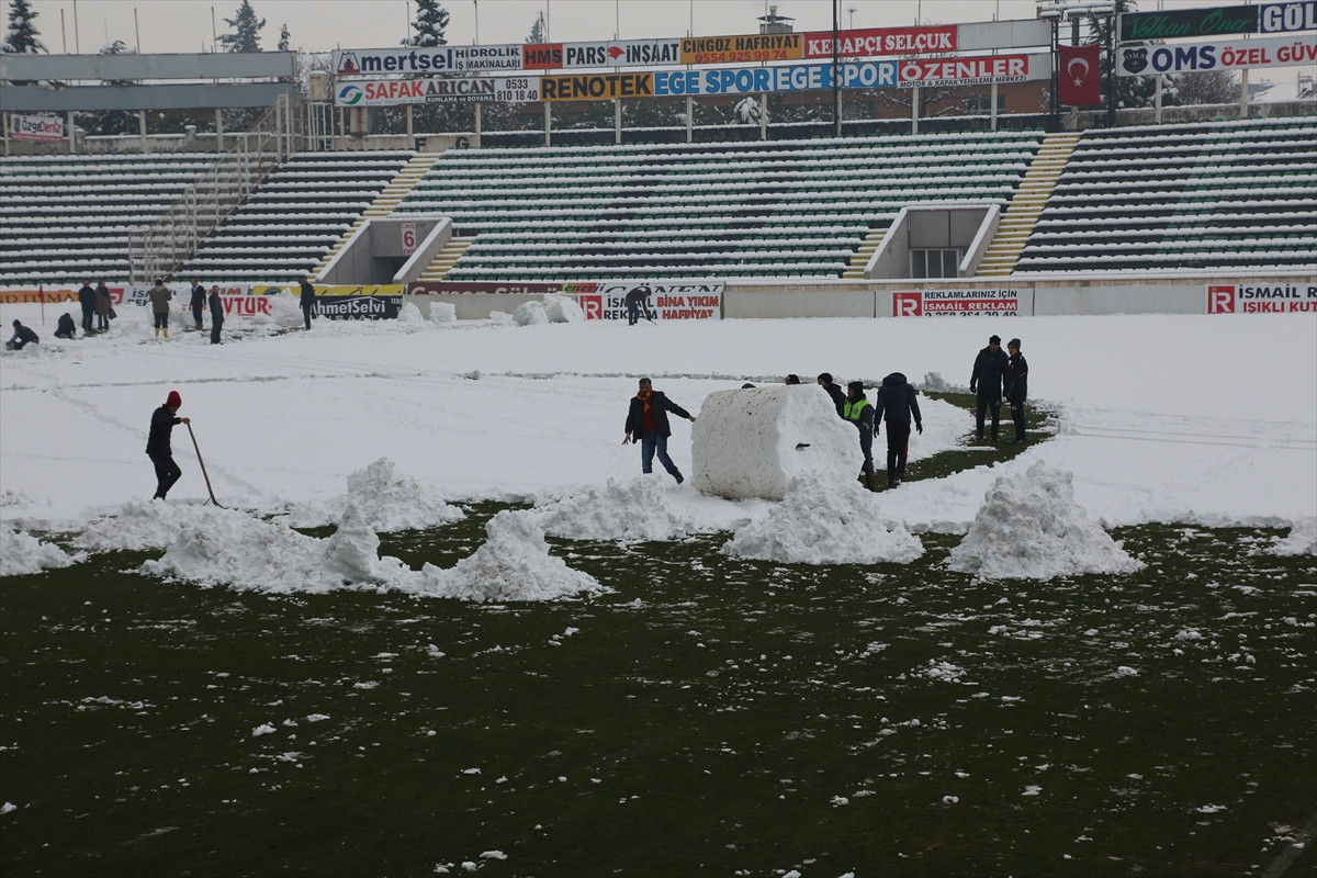 Denizli'de dün başlayan ve geç saatlere kadar devam eden kar yağışı dolayısıyla karşılaşmanın yapılacağı Denizli Atatürk Stadı'nın zemini, 15 santim karla kaplandı.