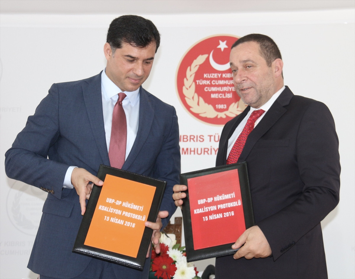 KKTC'de hükümetin istifası üzerine Cumhurbaşkanı Mustafa Akıncı'nın hükümeti kurma görevini UBP Genel Başkanı Hüseyin Özgürgün'e vermesinin ardından Özgürgün ile DP-UG Genel Başkanı Serdar Denktaş Cumhuriyet Meclisinde protokol anlaşması imzaladı.