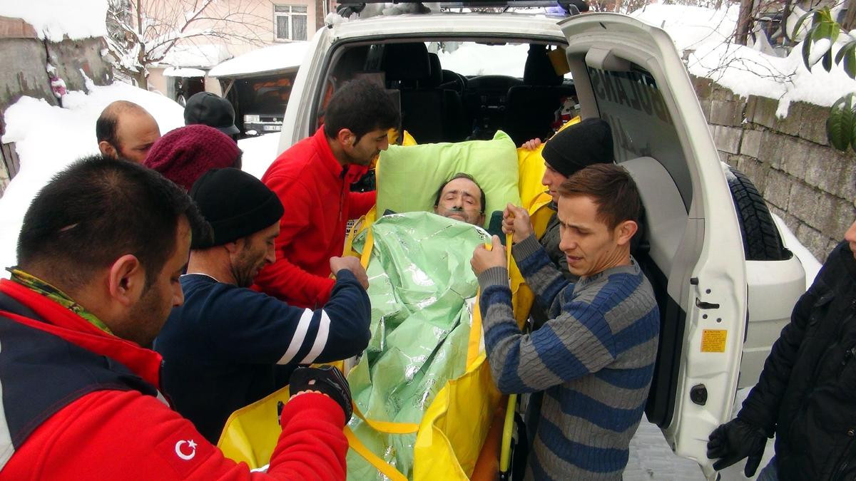 Kar kalınlığının yer yer 1 metreyi bulduğu yolda güçlükle ilerleyen ekipler, zorlu yolculuğun ardından evine ulaştıkları Fidan'a ilk müdahaleyi yaptı.