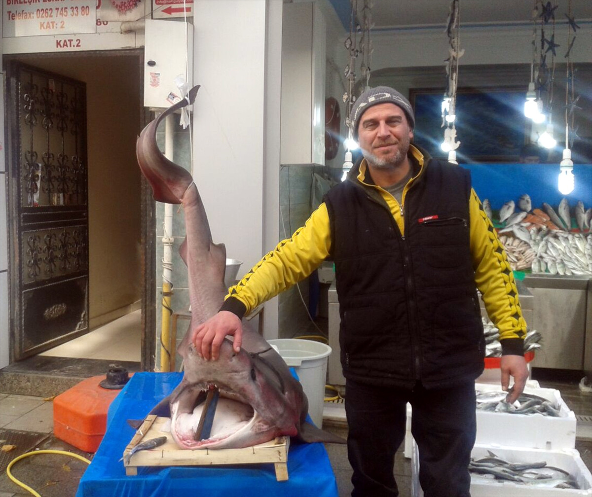 Dün akşam denize açılan balıkçı Ahmet Barış'ın ağına, camgöz cinsi köpek balığı takıldı. İzmit Körfezi'nin Darıca açıkları Adalar mevkisinde yakalanan camgöz, ilçedeki balıkçı tezgahında sergileniyor.