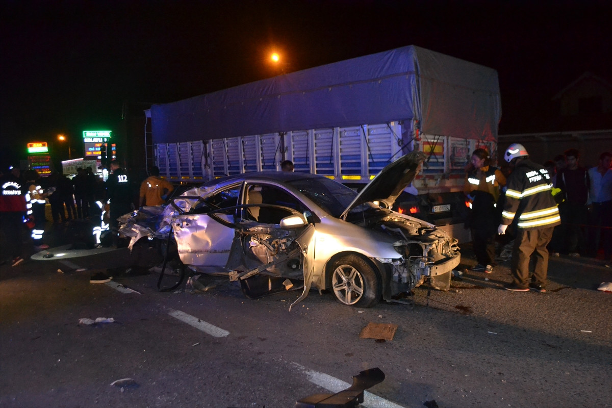 Savrulan otomobil yol kenarında park halindeki 61 K 1844 plakalı tıra çarparak durabildi.