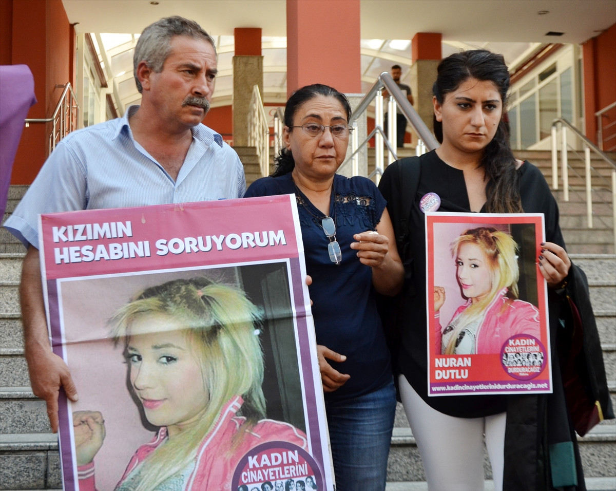 Adliye önünde bir araya gelen Kadın Cinayetlerini Durduracağız Platformu üyeleri de Nuran Dutlu için adalet istediklerini belirtti.