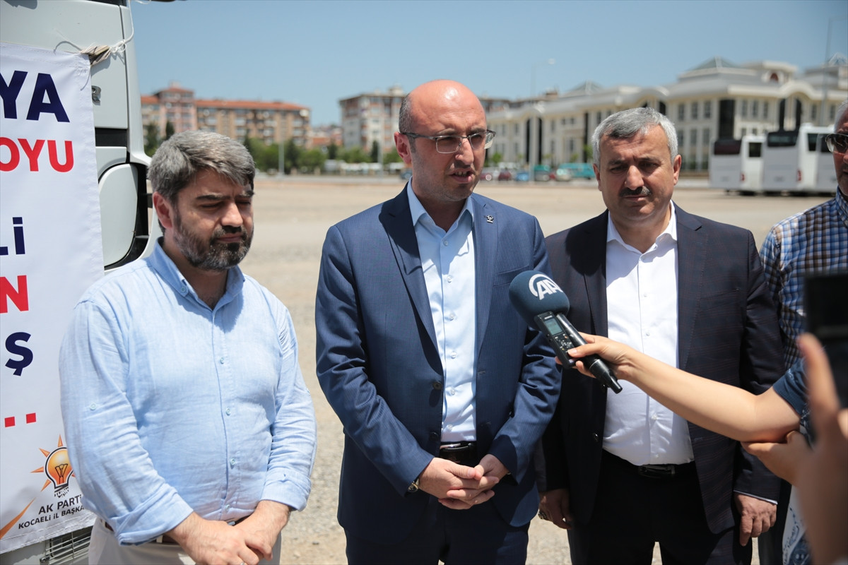 KOCAELİ (AA) - AK Parti Kocaeli İl Başkanlığı tarafından terörden mağdur olan aileler için toplanan erzak yardımlarının bulunduğu tır, Mardin'e uğurlandı.