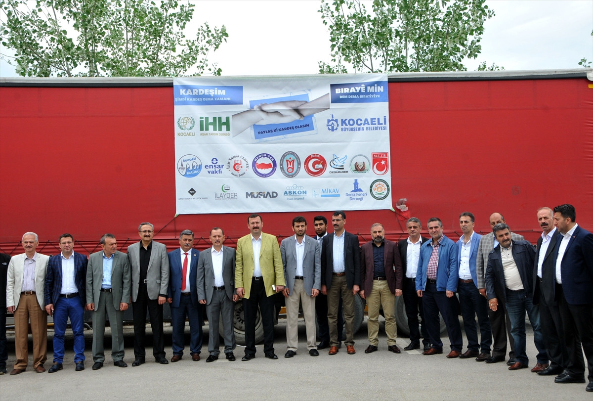 KOCAELİ (AA) - Kocaeli İnsani Yardım Derneği ve Büyükşehir Belediyesince düzenlenen kampanyada Suriye ile Diyarbakır'daki ihtiyaç sahipleri için toplanan yardımları taşıyan 3 tır, dualarla uğurlandı.